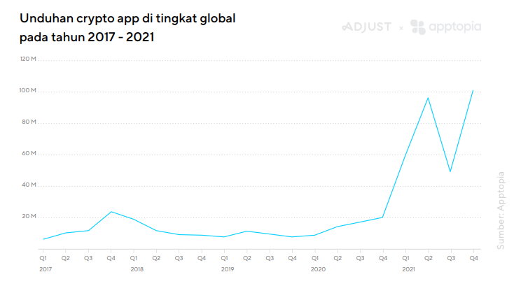 Jakarta, Gizmologi โ Ekosistem kripto makin menunjukkan pertumbuhannya yang kian eksponensial.ย Platform mobile marketing analytics Adjust dan app intelligence provider Apptopia pun menunjukkan hal itu. Mereka baru saja meluncurkan laporan bertajuk โFintech Deep Dive: Playbook Mata Uang Digital di Tahun 2022โ, yang mengevaluasi faktor-faktor utama yang mendorong penggunaan aplikasi cryptocurrency di tahun 2021.