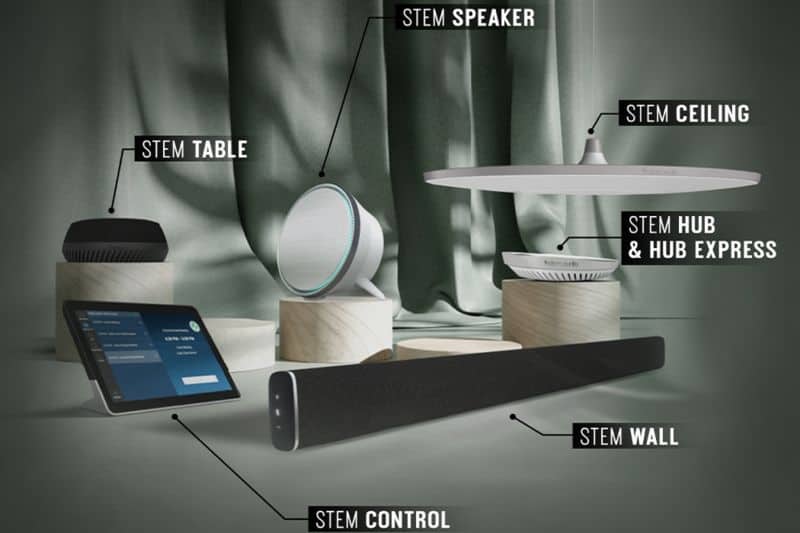Stem Ecosystem mencakup wall dan table speakerphone, bersama dengan ceiling microphone yang menyatu dengan ruangan mana pun dan disinkronkan dengan pengeras suara jaringan (networked loudspeakers), serta sistem kontrol khusus untuk paket audio yang lengkap.โโโโโโโ