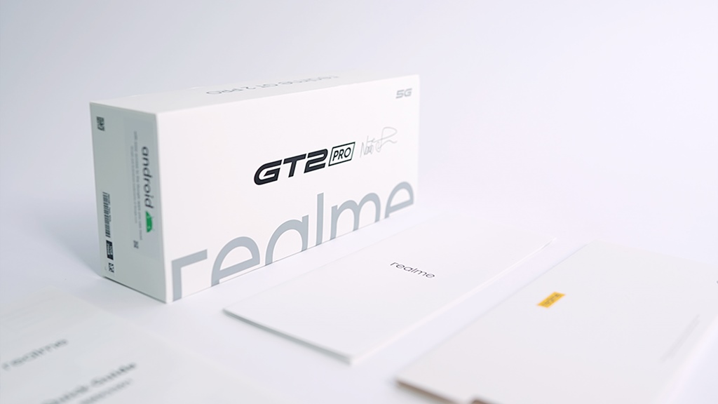 Seperti yang Gizmo friends bisa lihat pada gambar di atas, kotak dari realme GT 2 Pro sendiri terlihat cukup berbeda dari seri-seri sebelumnya. Tampil dalam warna dominan putih, kemasan ini dibuat dengan bahan yang mudah didaur ulang, serta menggunakan tinta cetak dari soy inkโtersertifikasi oleh International Sustainability & Carbon Certification.