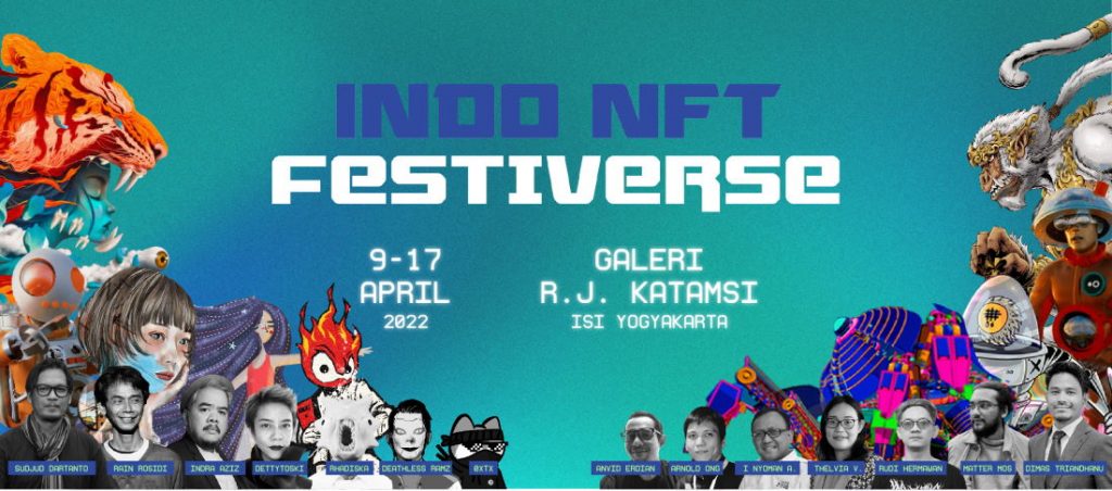 Festival Non Fungible Token (NFT) tersebut akan digelar di Yogya pada 9-17 April mendatang di Galeri R.J Katamsi, Institut Seni Indonesia (ISI) Yogyakarta. Bertajuk Indo NFT Festiverse, pameran yang diadakan oleh Art Pop Up, berkolaborasi dengan Galeri R.J. Katamsi dari Institut Seni Indonesia dan Sewon NFT Club ini akan dilaksanakan secara hybrid, baik secara daring maupun luring.