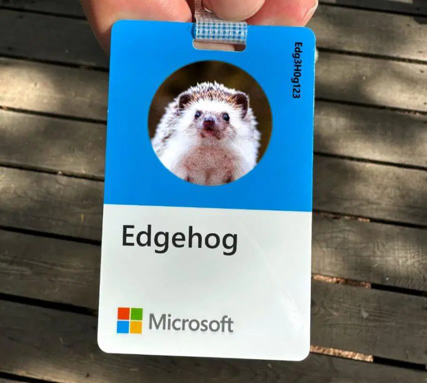 Melalui postingan di akun media sosial @MicrosoftEdge, landak kecil yang diberi nama โEdgeHogโ yang merupakan akronim atau penggalan kata dari Hedgehog jika dibalik. Ia bahkan sudah mendapatkan id card miliknya sendiri dengan nama โEdg3HOg123โ agar bisa berkeliaran di area kantor Microsoft.