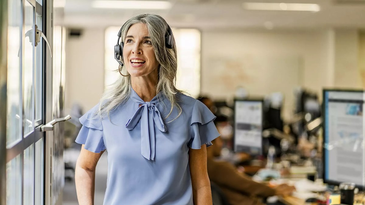 Poly Voyager 4300 UC, Headset Khusus Rapat Virtual dengan Tombol Mute Khusus